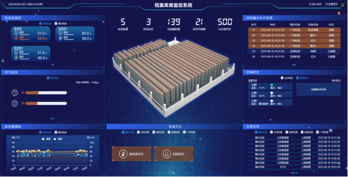 通過對庫房環(huán)境、安保等進行監(jiān)控,庫房智能監(jiān)、管、控一體化,功能涵蓋庫房“十防”(防盜、防火、防蟲、防鼠、防潮、防塵、防高溫、防光、防霉、防有害氣體)。