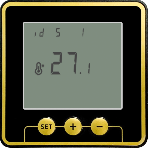 1. 溫度傳感器上有三個(gè)按鍵,“+”“-”鍵顯示各設(shè)置項(xiàng)目值,按“SET”可進(jìn)入設(shè)置設(shè)置模式,然后“+”“-”調(diào)整值。