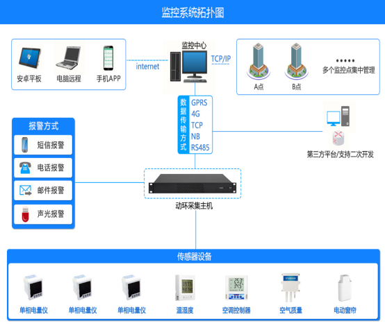 在集中管理平臺登錄主機IP,即可實現(xiàn)對采集設備的實時監(jiān)控,在后臺對溫濕度進行上下閾值的設置,可以聯(lián)動控制空調(diào)、風機等開啟和關(guān)閉,也可單獨對空調(diào)、風機、燈光等設備進行相關(guān)操作,實時監(jiān)測實時檢測記錄對應氣體的濃度值,如一氧化碳濃度值、空氣含氧量、空氣質(zhì)量等,一旦濃度超標,立即聯(lián)動風機降低氣體濃度,同時通過聲光、電話、公眾號、app、短信等方式進行報警。