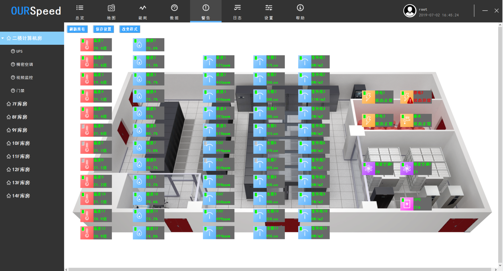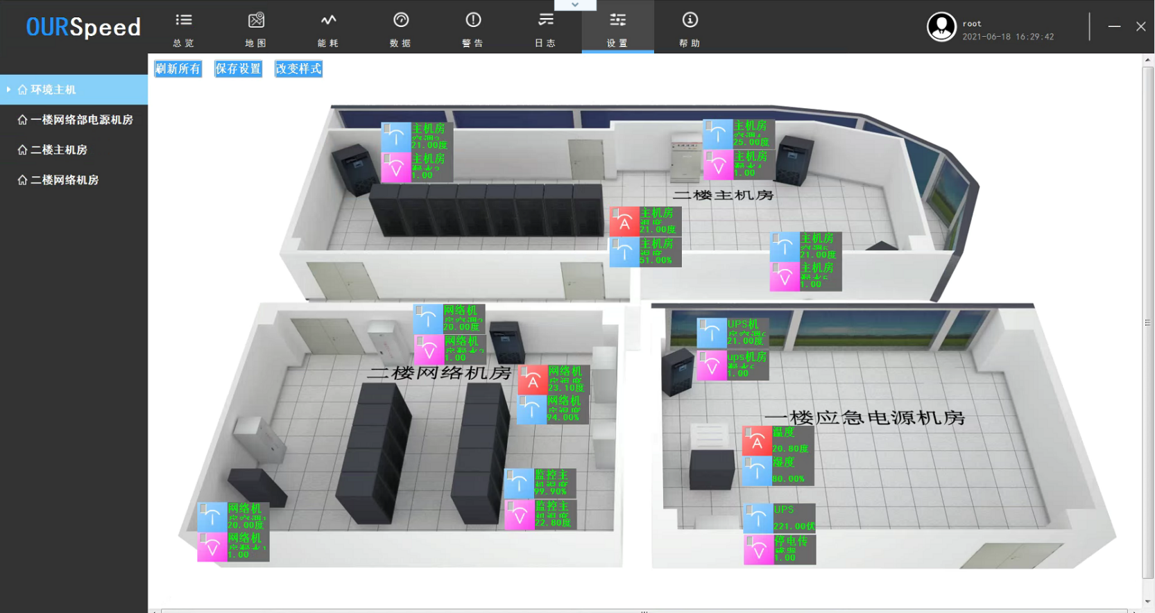 6.具有SMTP郵件報警功能,支持更安全SSL加密的郵件協(xié)議,能夠提供JSON格式北向接口,提供傳感器的多種界面展示風(fēng)格,比如汽車儀表樣式,數(shù)碼管風(fēng)格樣式等。傳感器數(shù)據(jù)顯示樣式不少于4種,并且能實時切換各種顯示樣式,傳感器可隨時在系統(tǒng)拓撲圖上拖動,靈活的將傳感器展示在拓撲圖上指定位置,支持多種不同權(quán)限級別用戶登錄操作,支持BS端控制空調(diào),實現(xiàn)聯(lián)動,可以直接接入視頻監(jiān)控,實時查看,可進行大屏展示,也可遠程切換后臺處理數(shù)據(jù)異常。