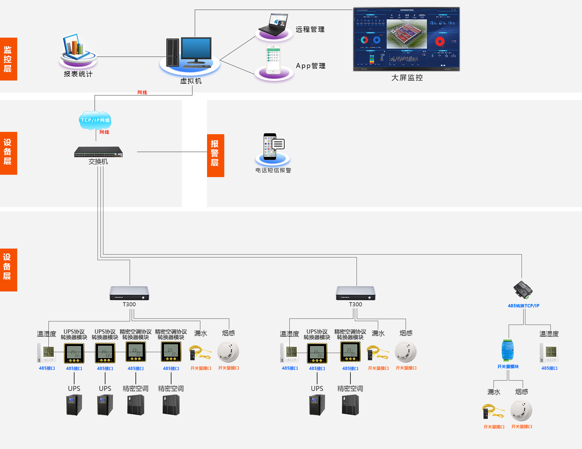 機房動力環(huán)境監(jiān)控系統(tǒng)設(shè)計是一項精密且至關(guān)重要的工程,涉及到多個領(lǐng)域的技術(shù)融合與創(chuàng)新,在這個系統(tǒng)中,要確保每一個細節(jié)都能為機房的穩(wěn)定運行提供堅實保障,要關(guān)注機房的溫度、濕度、UPS、水浸等環(huán)境指標。