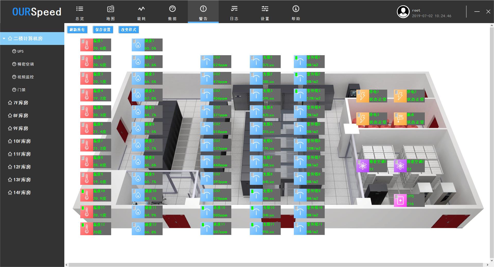 隨著技術(shù)的發(fā)展,動力環(huán)境監(jiān)控系統(tǒng)逐漸成為主流,這類系統(tǒng)通過集成多種傳感器(如溫濕度、煙霧、紅外、水浸、氣體等),可聯(lián)動空調(diào)、除濕機(jī)、視頻、門禁等,實時監(jiān)測庫房內(nèi)的環(huán)境參數(shù)。一旦某項參數(shù)超出預(yù)設(shè)范圍,系統(tǒng)便會自動觸發(fā)報警機(jī)制,通過電話、短信、郵件、APP、微信推送等多種方式,將報警信息實時發(fā)送給管理人員。